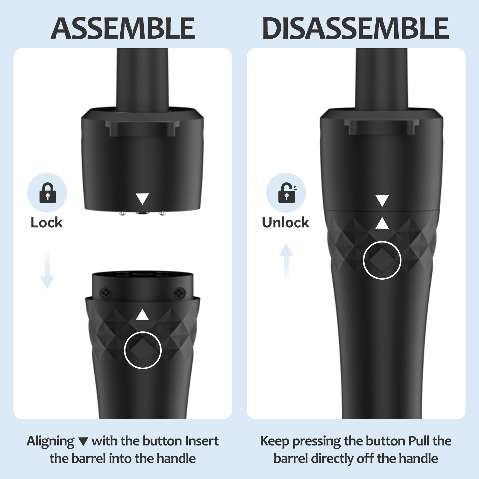 - Quick-to-install: interchange design makes it easy to change the barrel for different hair styles.